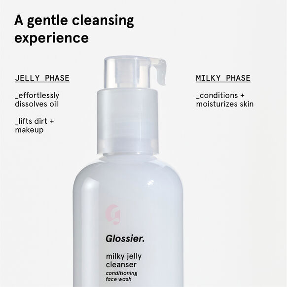 Upgrade a cleansing routine with Glossier Milky Jelly Gentle Gel Face Cleanser. This nourishing face cleanser is gentle enough for twice-daily use, yet effective at removing dirt, oil and even makeup. Packed with skin-conditioning ingredients, this hydrating cleanser leaves the face feeling soft, smooth and never stripped.